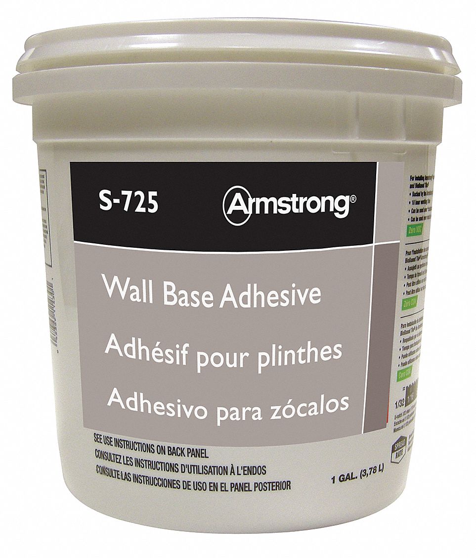 This acrylic water based vinyl baseboard adhesive should be used when installing wall base on porous surfaces such as drywall.